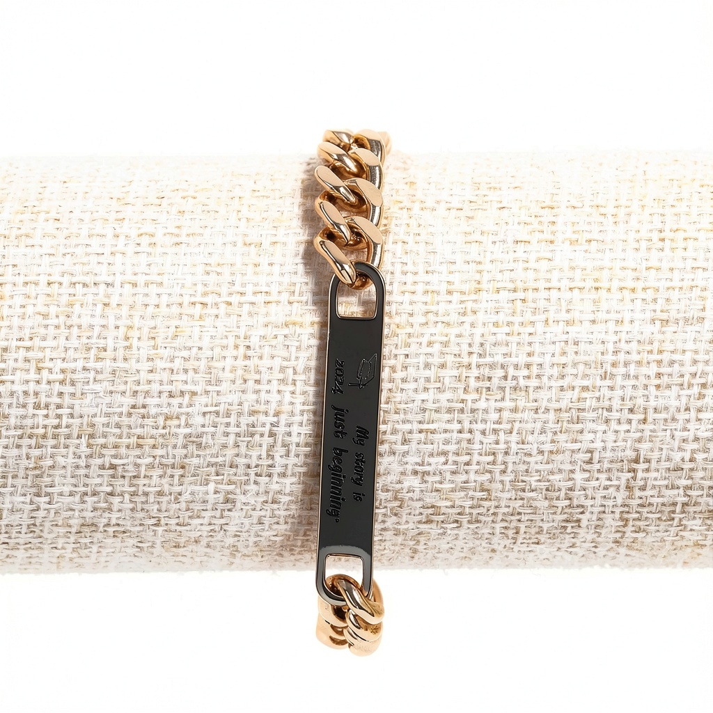 Le bracelet Tobestu est spécialement conçu pour célébrer les remises de diplômes et marquer le début d’un nouveau chapitre. Fabriqué en acier chirurgical de haute qualité, il offre une excellente résistance à la corrosion et à la décoloration, tout en étant hypoallergénique pour un port confortable au quotidien. D’une longueur de 20,3 cm, il s’adapte à la plupart des poignets adultes. La plaque métallique est gravée des mots ‘My Story is Just Beginning’, un message inspirant qui symbolise la croissance personnelle et les réalisations académiques. Ce bijou allie design classique et modernité, convenant aussi bien aux femmes qu’aux hommes.