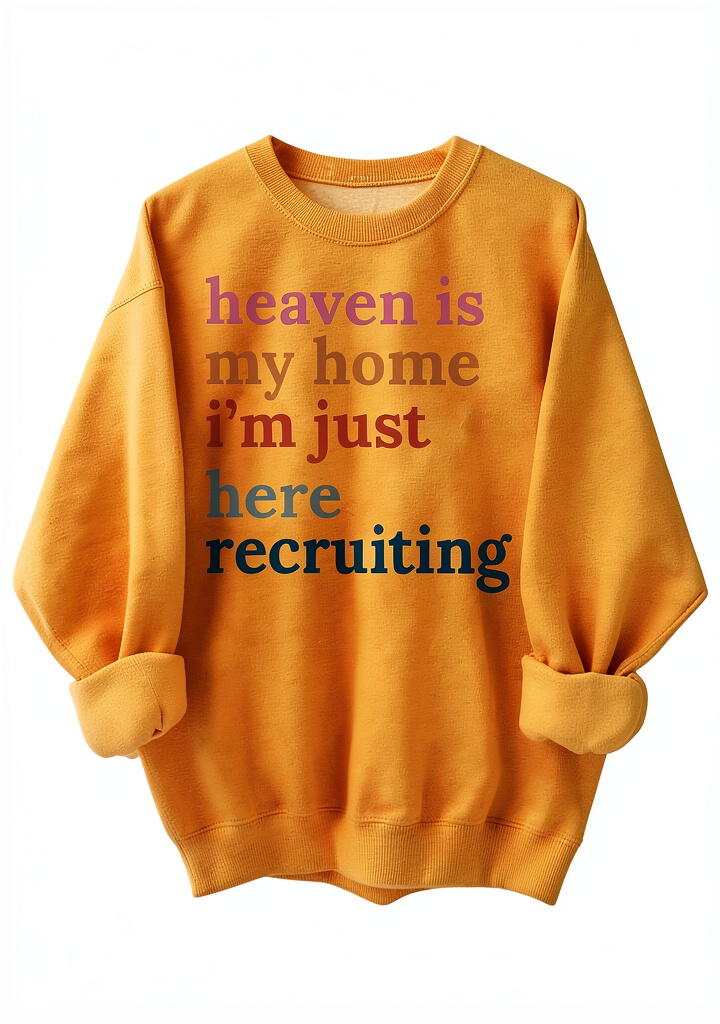 Le sweatshirt ‘Heaven Is My Home’ est un vêtement religieux chrétien conçu pour offrir confort et style. Fabriqué avec soin, il présente un col rond et des manches longues, dans une couleur jaune vibrante qui attire l’attention. Sa coupe unisexe le rend adapté aux hommes et aux femmes, avec une taille XXL pour un ajustement ample. Les impressions élégantes mettent en valeur un message inspirant, parfait pour ceux qui cherchent à exprimer leur foi de manière moderne.